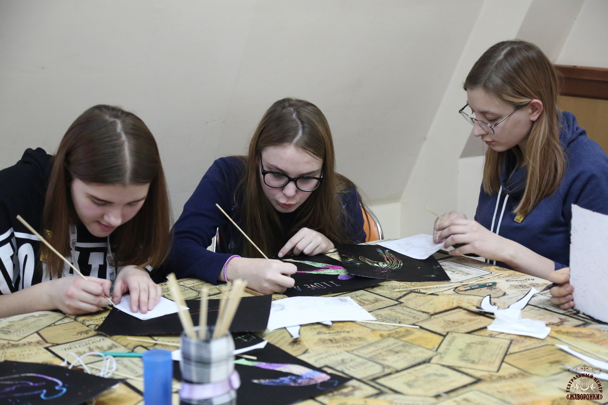 Увлекательные мастер-классы прошли 21 февраля в рамках фестивальной недели в Театральном центре «Жаворонки». Руководитель изостудии Дарья Магда провела класс по созданию гравюр с использованием рисования картин из воска. Это современное творчество и рукоделие предлагает массу очень интересных и необычных техник, в том числе технику, когда картины рисуют путем процарапывания по воску. Называется такая техника рисования граттаж, или воскография. Участники впервые столкнулись с необычными формами и направлениями в изобразительном искусстве.