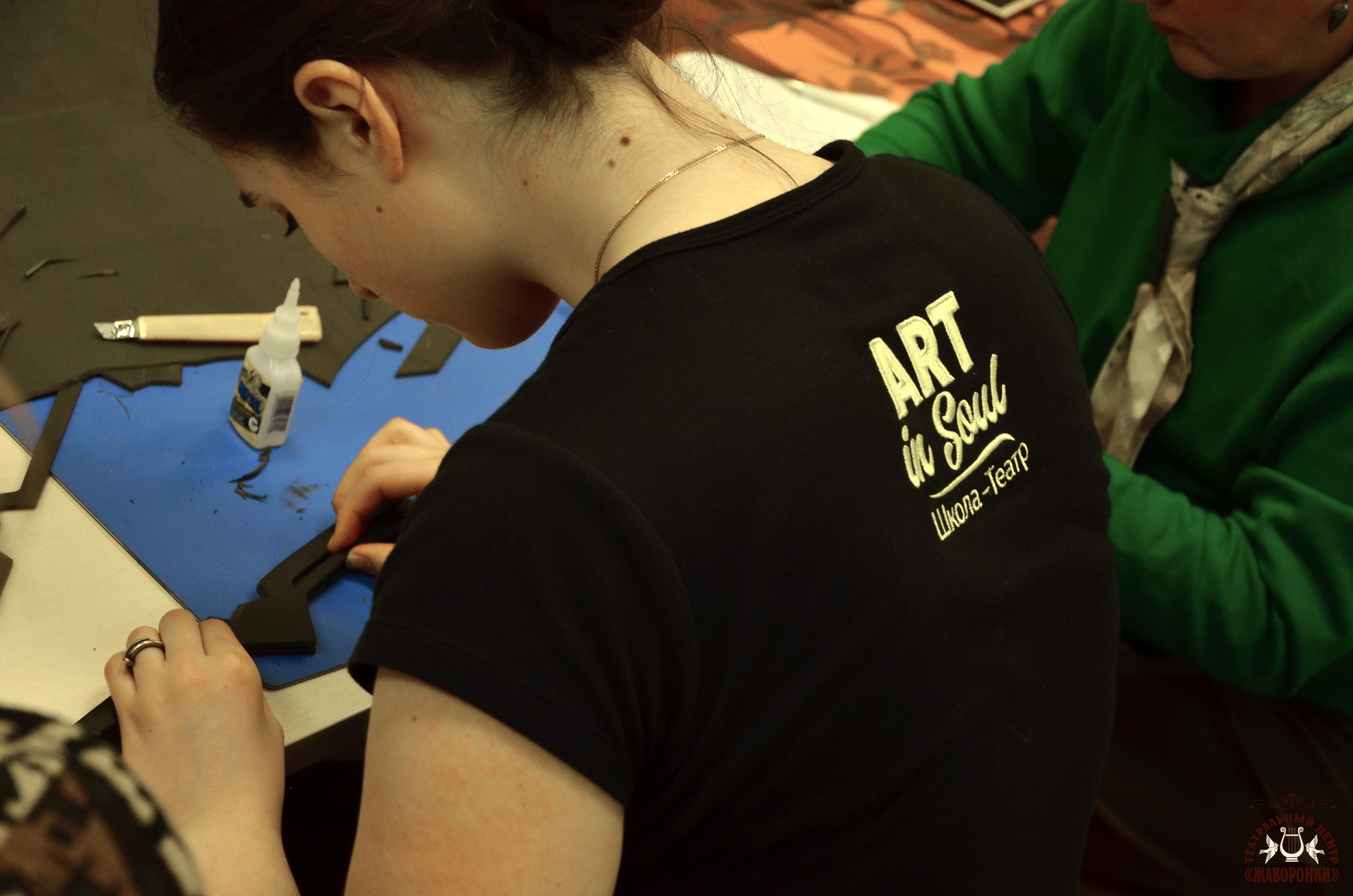 изготовления костюмов послужил материал EVA. Наши преподаватели поделились интересными техниками для создания легких структур любого типа и дизайна. Создание основной базы и конструкции с помощью вырезания и склеивания, рисунка вашего собственного и неповторимого дизайна. Затем, конечно, покраска для придания необходимого внешнего сходства с оригинальным предметом, декорирование и дополнение профессионального костюма для неповторимого образа.