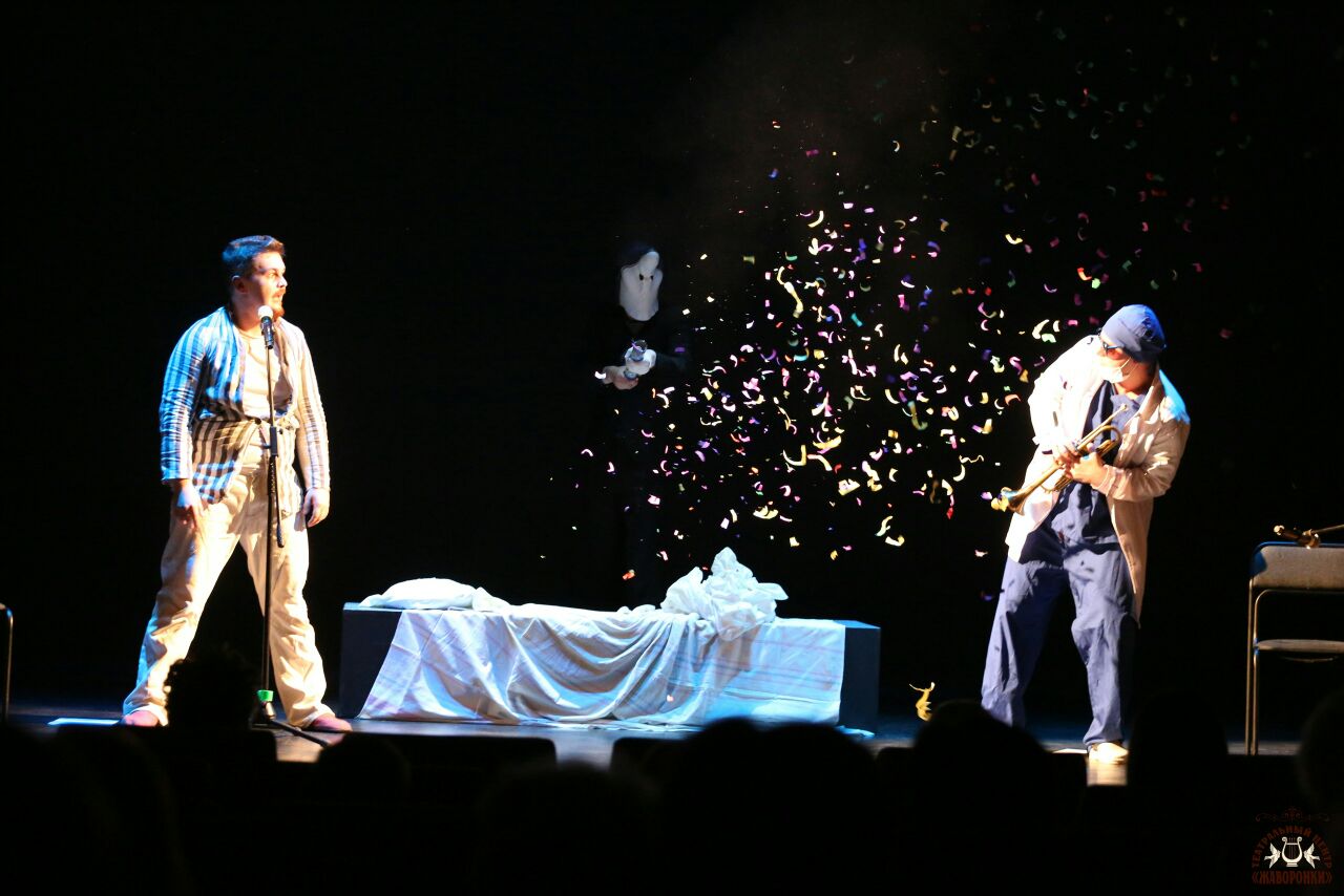 Вновь посетил Театральный центр «Жаворонки» Московский театр-студия имени Леонида Андреева. В рамках фестиваля «Взмах крыла» абсурдный спектакль «Дельфины и психи» по рассказу Владимира Высоцкого уже был представлен на суд наших зрителей. Моноспектакль и на этот раз покорил публику, каждый с восхищением смотрел за происходящими на сцене.