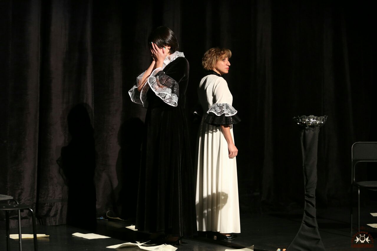 Это история о молодой поэтессе, пережившей расставание со своей единственной любовью. В состоянии глубокого отчаяния она вступает в диалог со своей тенью, которая помогает ей разобраться в собственной жизни и чувствах. Интересная режиссерская задумка Сары Мусаевой великолепно прозвучала со сцены. Хотим отметить, что она исполнила роль той самой девушки, а ее тенью стала Ольга Райгородецкая. Прекрасный актерский дуэт великолепно смотрелся со сцены и очень понравился публике.